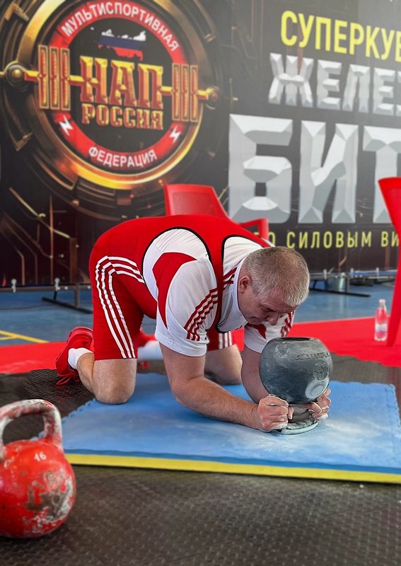 Андрей Тимофеев также занял 1 место, выполнив 202 подъёма гири весом 16