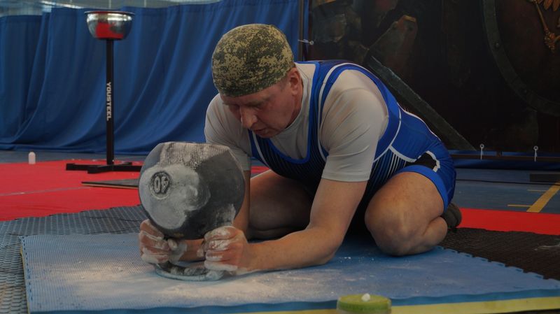 Алексей Тимофеев занял 1 место в упражнении «кистевая тяга гири»,