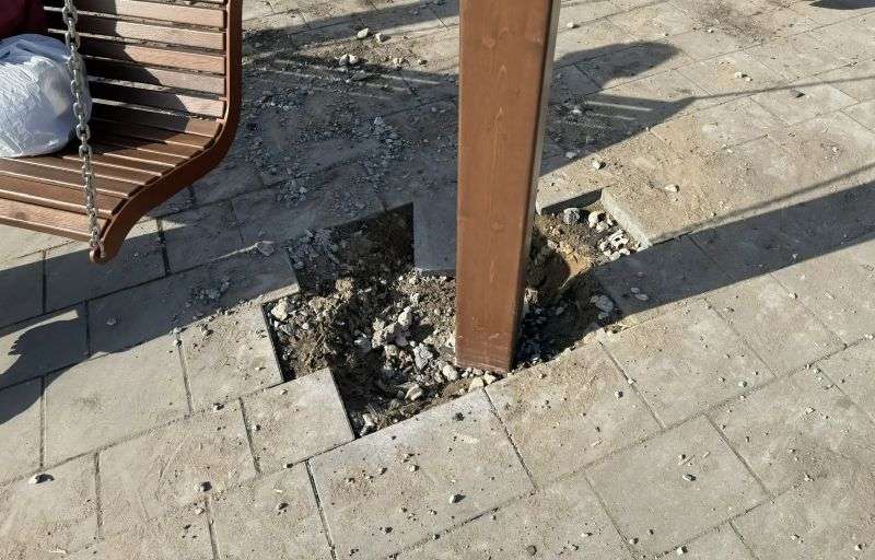 Возможно, все эти недостатки будут устранены... Пишем «возможно», ведь в зоне видимости нет ни одного информационного стенда о том, что вообще происходит в местах, где кое-как установлены объекты. Например, здесь лежат мешки с неизвестным содержимым - возможно, в них чернозем для газона, а, возможно, песок, чтобы набережная не уплыла после весны. Это тайна.