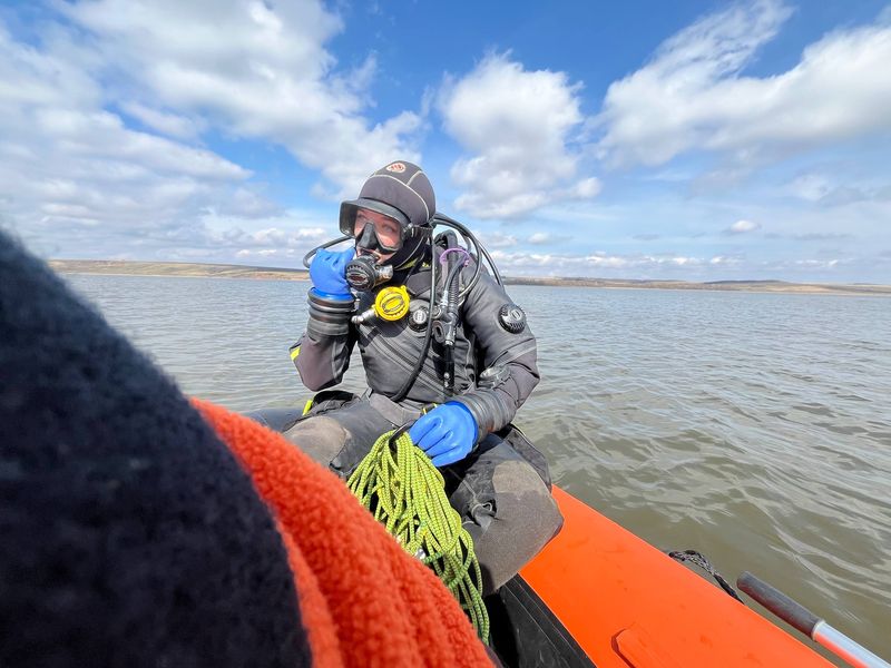 13 апреля поиск возобновился. Привлеченный отрядом «ЛизаАлерт» водолаз со страховкой отряда погрузился для осмотра дна.
