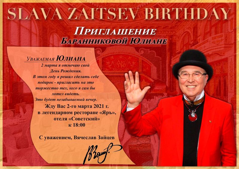 приглашении, Вячеслав Зайцев собрал лишь тех, кого сам хотел видеть.