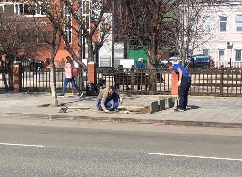 устранению локальных проседаний тротуарной плитки на улице Советской, -