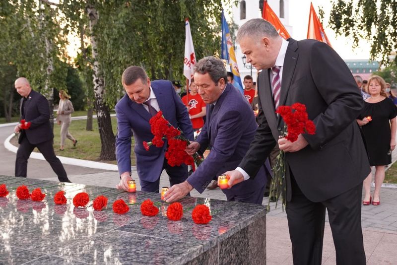В истории нашей страны 22 июня - печальная и памятная дата. В этот день 80 лет назад войска гитлеровской Германии и ее европейских союзников вторглись на территорию Советского Союза. Сегодня, в День памяти и скорби, в 4 часа утра у мемориального комплекса «Вечный огонь» в Сызрани состоялась ежегодная акция «Свеча памяти». В ней приняли участие и.о. главы города Анатолий Лукиенко, депутаты губернской думы Петр Лобарев и Сергей Гринько, секретарь местного отделения партии «Единая Россия» Николай Лядин, генеральный директор АО «Тяжмаш» Андрей Трифонов, депутаты городской думы, сотрудники администрации, МУ МВД «Сызранское», «Боевое братство», члены патриотических клубов. В память о погибших защитниках Родины были зажжены свечи, к вечному огню возложены цветы.