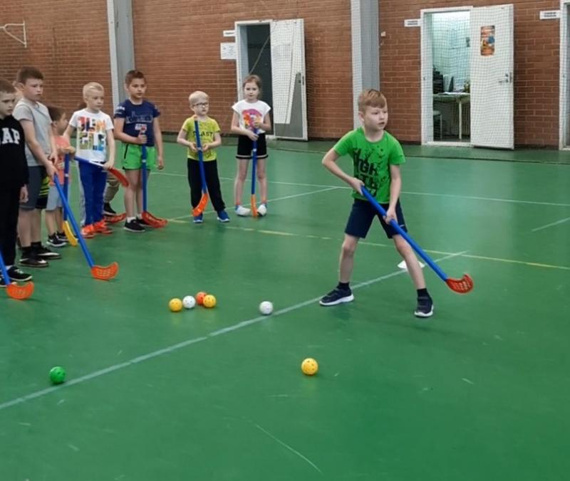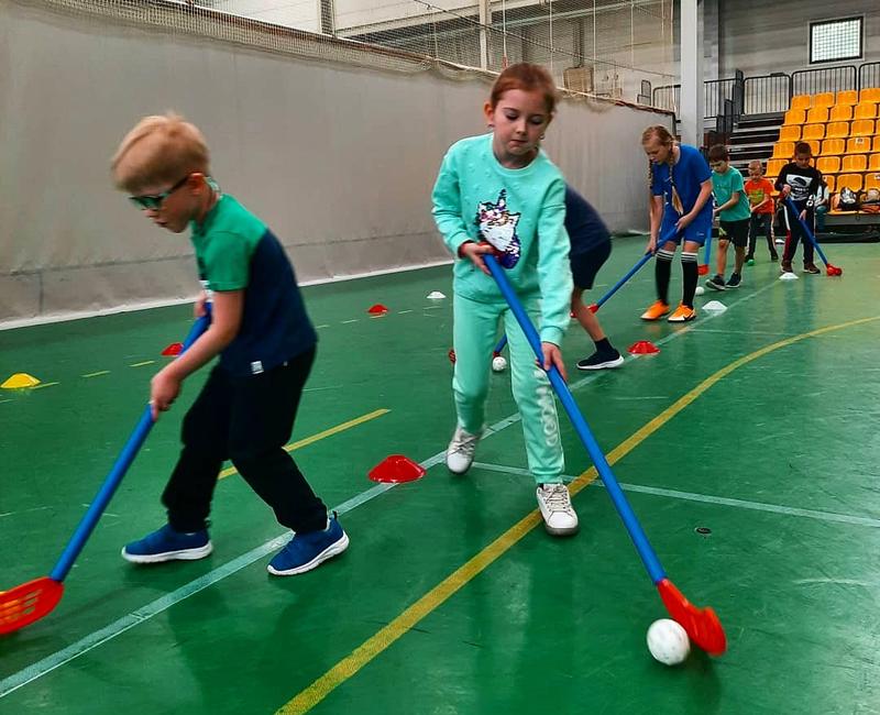 ребята увлеченно тренируются. В флорболе мячик - легкий и дырявый, как