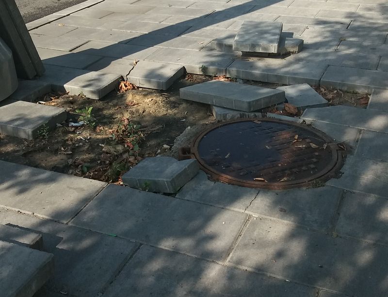 А теперь мужчина обратил внимание, что разобран участок на тротуаре около КРЦ «Улица». Сызранец не исключает, что плитку «повело» после недавних дождей, а рядом канализационный колодец.