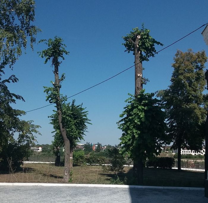 По территории у Спасской башни кремля, у вечного огня ежедневно проходят сотни горожан. Сюда приезжают все иногородние экскурсанты. И что они видят? Изуродованные деревья. И, к сожалению, любоваться ими горожанам еще долго. Но даже спустя годы настоящие кроны они уже не отрастят.