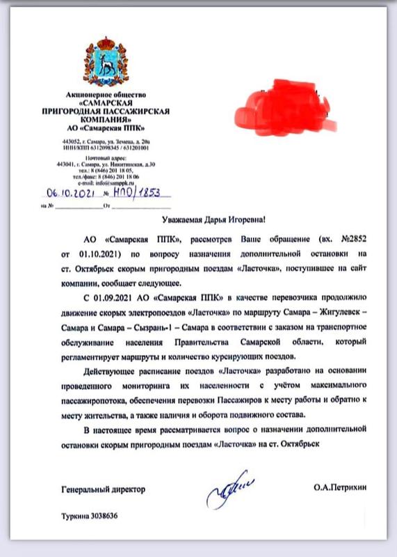остановок «Ласточки». Поэтому октябрьцам целесообразно было бы обращаться