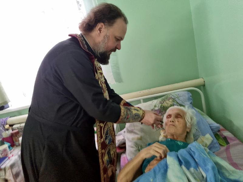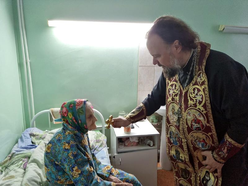 Медики горбольницы №3 обратились с просьбой к настоятелю Феодоровского храма игумену Марку. Медперсонал беспокоило душевное состояние пациентов отделения сестринского ухода. Среди них немало престарелых, маломобильных, а то и вовсе лежачих больных. Сейчас, во время Великого поста, людям хотелось бы очистить покаянием душу, исповедаться, причаститься, но дойти до храма многие из них были не в состоянии. И таких пациентов набралось немало - 21 человек. Больница находится в приходе храма в поселке Новокашпирский, и священник не в первый раз навещает больных, чтобы причастить их Христовых тайн - но такое количество желающих было в первый раз.