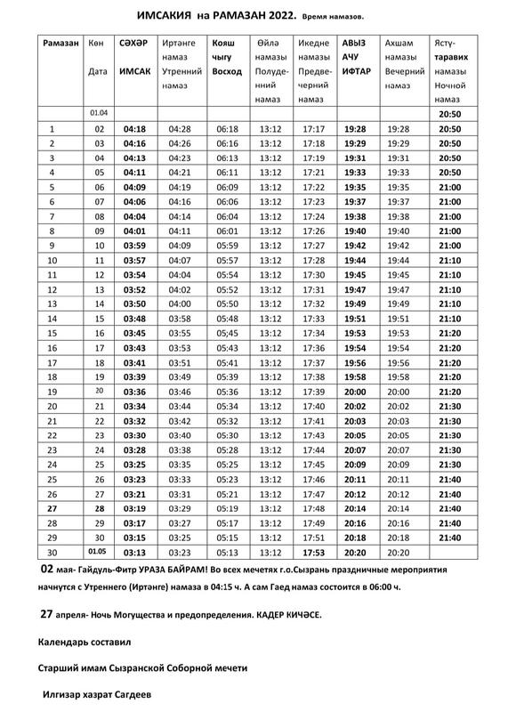 А 2 мая в сызранских мечетях будет совершаться праздничный намаз, в