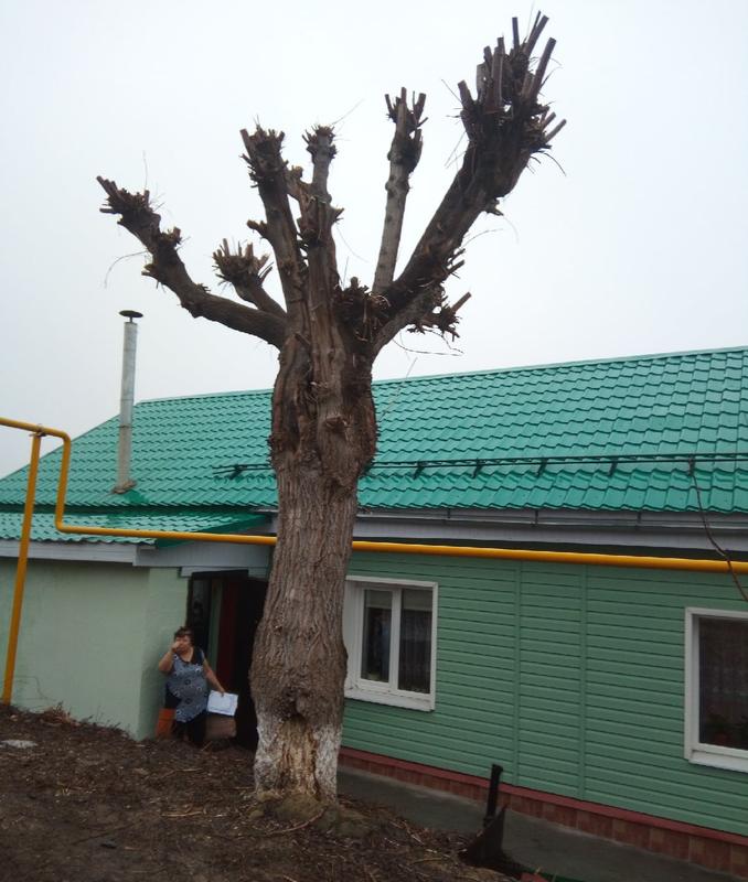 увы, они не спилили старое дерево, что было бы быстрее и проще, а лишь «обкорнали» его до состояния 4-метрового толстого пенька.