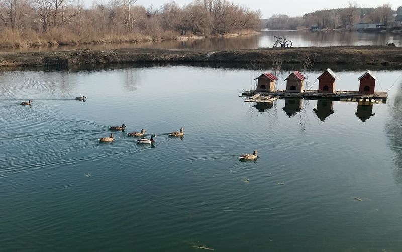 «Дети пытались долго понять, для кого предназначены эти домики. Но потом выплывшие откуда-то из дальнего угла утки сняли все вопросы, а для кого, собственно, были установлены плавающие будки. Повеселило - придумал же кто-то», - рассказал корреспонденту портала глава семейства.