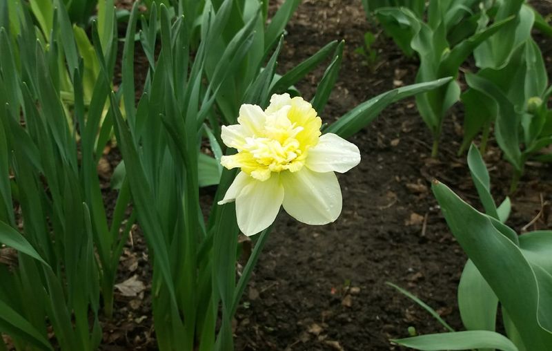 Жительница нашего города несколько дней назад обнаружила у себя в палисаднике распустившийся бутон нарцисса. Как она сама рассказала корреспонденту портала «маленькая Сызрань», такого чуда в середине апреля она никак не ожидала. Обычно нарциссы и тюльпаны у нее зацветают к 9 мая, женщина в прошлые годы, до пандемии, на День Победы срезала все, что цвело, и несла на площадь - раздавала ветеранам. А теперь она волнуется, что с такими темпами к 9 мая уже все отцветет, раз первый нарцисс уже распустился 17 апреля. А на подходе и остальные цветы - бутоны так и рвутся в рост.