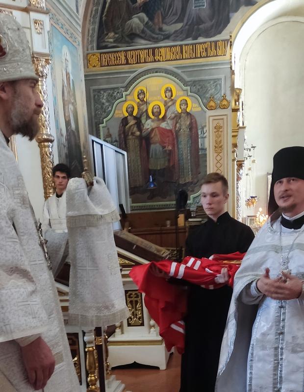 Глава сызранской епархии епископ Леонтий получил сегодня сердечный подарок от братии Свято-Вознесенского мужского монастыря. Сегодня утром, в Великую субботу, Владыка возглавил литургию в сызранской обители. Архипастырь обратился ко всем молящимся с поздравительным словом, напомнив о том, какой подвиг ради спасения человечества совершил Иисус, и о значении предстоящего праздника. Наместник мужского монастыря игумен Агафангел поздравил главу епархии с наступающим великим праздником, и от лица всей братии и прихожан монастыря подарил Владыке архиерейскую мантию пасхального цвета. Также в монастыре сообщили, что с 18 до 20 часов сегодня пройдет освящение пасхальной снеди на территории монастыря. «А уже в 23:00 начинаем полунощницу Великой субботы, и в 0:00 начинается уже Пасхальное богослужение», - сообщил игумен Агафангел.