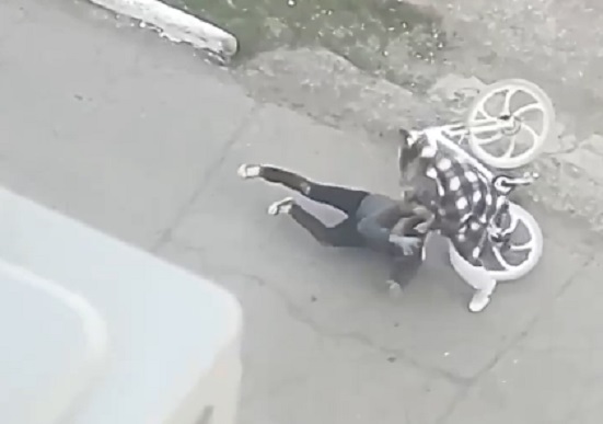 В сети появилось видео избиения женщиной в клетчатом пальто молодого велосипедиста. Как сообщает автор поста, выложивший ролик в Телеграм, что события будут разворачиваться подобным образом, изначально не ясно было. По словам очевидцев, отношения между велосипедистом и женщиной сначала развивались мирно и мило – женщина хотела парня обнять и поцеловать, но он оттолкнул ее и попытался уехать. Расплата прилетела через секунду: женщина ударом ноги повалила парня на землю, а затем набросилась на него и стала наносить ему по голове, как показалось очевидцам, довольно мощные удары. Парню удалось подняться, он попытался что-то возразить, но боевая дама снова угрожающе пошла на свою жертву с кулаками.