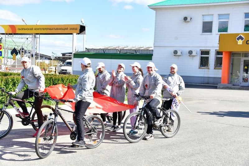 Сотрудники Сызранского НПЗ в канун праздника Великой Победы провели спортивный челлендж. Велосипедисты и легкоатлеты проложили маршрут по памятным местам города, связанным с Великой Отечественной войной. В него вошли оборонные предприятия, нефтезавод, эвакогоспитали, ГЭС и стратегически важный мост через Волгу. Велопробегом заводчане словно особо подчеркнули, что даже находясь в глубоком тылу, Сызрань внесла в Победу свой весомый вклад. Завершающим моментом челленджа стала передача копии знамени Победы сотрудникам завода, выстроившимся у проходной в гигантскую цифру «77».
