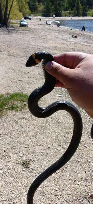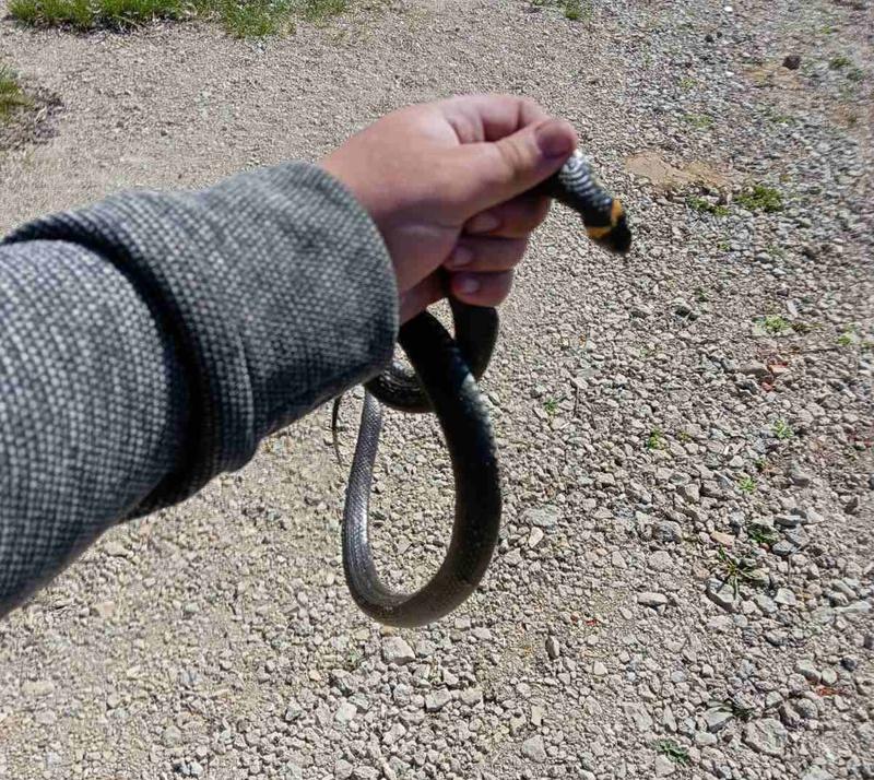 поймал ужей руками и отнес их в траву, подальше от берега. «Они как ящерицы, безобидные», - пояснил он. Гадюку он с осторожностью подцепил