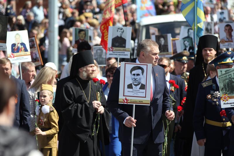 В торжествах честь 77-летия Дня Победы приняла участие сызранская епархия. Участники шествия Бессмертного полка и горожане, посетившие мемориал у сызранского кремля, стали свидетелями и участниками благодарственного молебна за дарование победы в Великой Отечественной войне и панихиды по павшим воинам, которые отслужил глава епархии епископ Леонтий. В Сызрани стали традицией службы в День Победы, которые проводят самые почитаемые священники города. Как пояснили корреспонденту портала маленькая Сызрань в епархии, традиция этой службы, установленной в 1994 году, уходит корнями в глубокую древность и имеет особый смысл.
