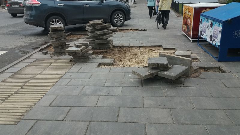 Едва ли эти единичные плиты будут поднимать, чтобы сломанные заменить и уложить все ровно. Впрочем, время покажет.