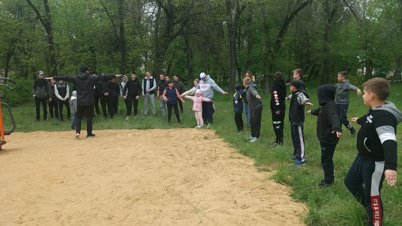 Первая тренировка собрала порядка 100 детей разного возраста и взрослых - в парк к
