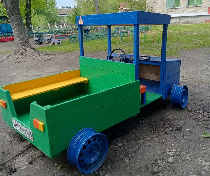 Жители улицы Северная в Октябрьске в один из недавних дней обнаружили «припаркованный» к дому соседей Синельниковых необычный автомобиль. Деревянный ГАЗ, «изделие местного автопрома», смастерил глава семейства Антон, при помощи супруги Любови. Недавно на семейном совете Синельниковы решили: нужно сделать подарок к Дню защиты детей детскому саду №2 «Золотая рыбка». Сад стал буквально семейным для октябрьцев: его посещал старший сын, там воспитывается дочка октябрьцев, а скоро в этот же сад пойдет младший Артёмка. Глава семьи трудился над автомобилем со старанием ювелира и ответственностью отца: «утопил» в дереве саморезы, чтобы ребята не поранились, отшлифовал все невидимые шероховатости, словом, сделал автомобиль полностью безопасным. И, конечно, интересным для современного ребенка XXI века.