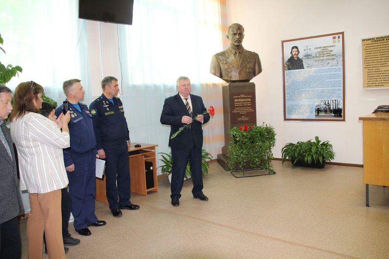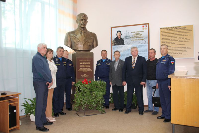 В понедельник, 30 мая, в стенах филиала Военного учебно-научного центра Военно-воздушных сил «Военно-воздушная академия имени профессора Н.Е. Жуковского и Ю.А. Гагарина» состоялось открытие бюста Герою Советского Союза и Герою Российской Федерации полковнику Майданову Николаю Саиновичу. Установка была реализована при непосредственной поддержке, участии РОСВЕРТОЛСОЮЗА и президента организации А.И. Новикова. Исполнителем заказа выступил всероссийский патриотический проект «Аллея Российской славы», руководителем которой является М.Л. Сердюков. Ранее, 04 ноября 2015 года бюст был установлен на Аллее Героев в Московском парке Победы в Санкт-Петербурге. Теперь его копия установлена в стенах училища лётчиков.