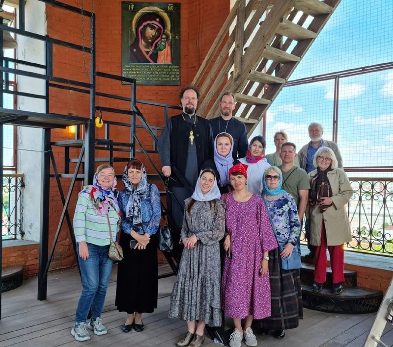 Святыням Сызранской земли был посвящен четвертый, заключительный день тура. Знакомство с православными достопримечательностями началось с посещения главного храма Сызранской епархии – Казанского кафедрального собора, который в нынешнем году отметит 150-летний юбилей. Об истории собора рассказал игумен Марк (Алексеев), после чего все поднялись на колокольню.
