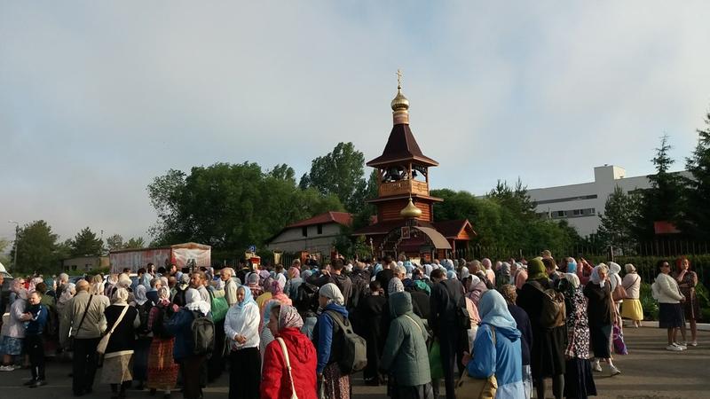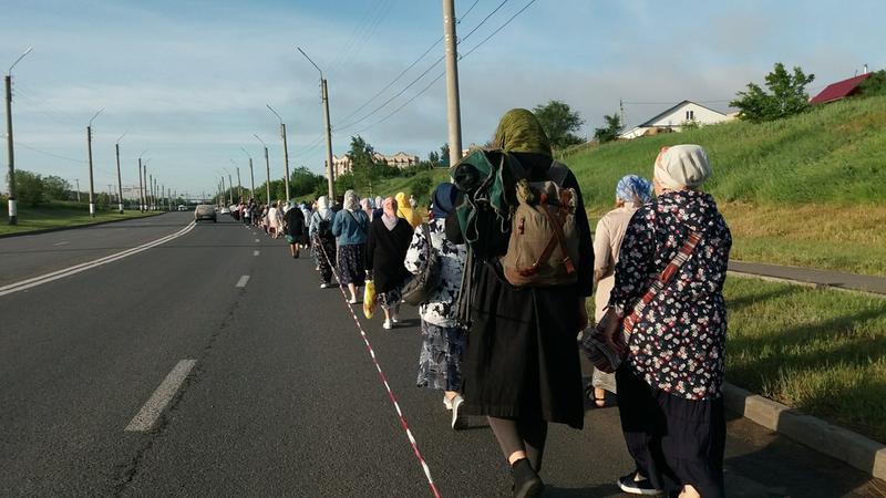 Кто-то проходит часть пути, от храма до храма, но таких мало - в основном идут те, кто настроен пройти весь путь до конца. У каждого храма проходит небольшой молебен, остановка порядка 10-15 минут. Для пожилых людей темп, с которым крестный ход вышел от Казанского собора, оказался серьезным испытанием - шли довольно быстрым шагом. Но после монастыря шаг стал размереннее: впереди вторая, более тяжелая часть пути.
