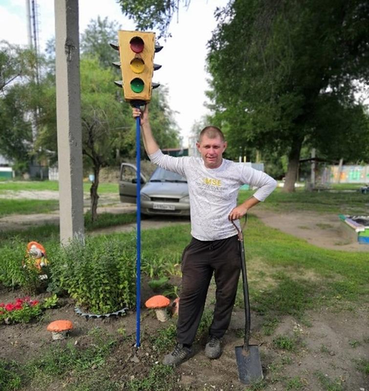 просьбе воспитателя сделал светофор с секретом: он по движению руки