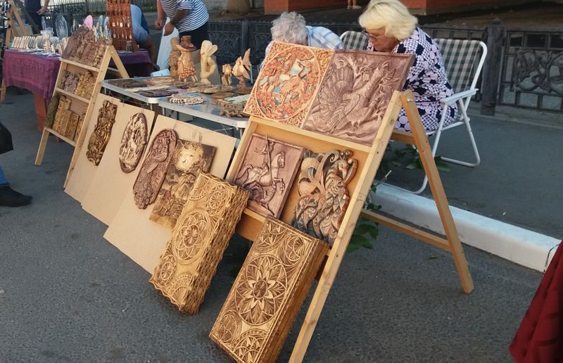 На фоне прошлых фестивалей нынешний смотрелся довольно бедно. Что до рыбы, то ее продавали только на одном небольшом пятачке - все остальное фестивальное пространство было заставлено сувениркой. Посмотреть на столах, конечно, было на что: украшения ручной работы, резьба из дерева, керамические и фарфоровые изделия, вязанные игрушки и остальное в том же духе. Однако на гастрономическом фестивале, да еще «Рыба-Раки», хотелось бы видеть десятки столов не с игрушками и украшениями, а с рыбой и раками.