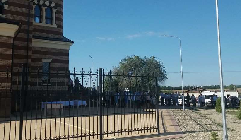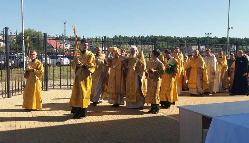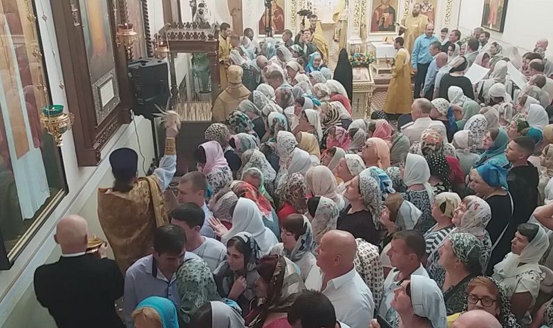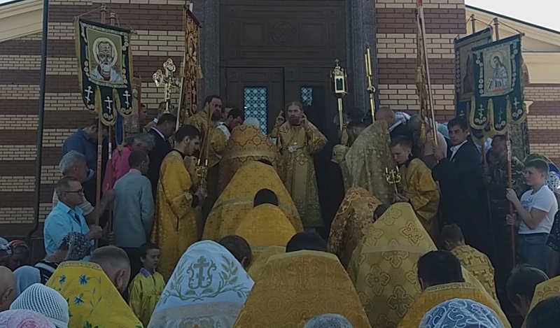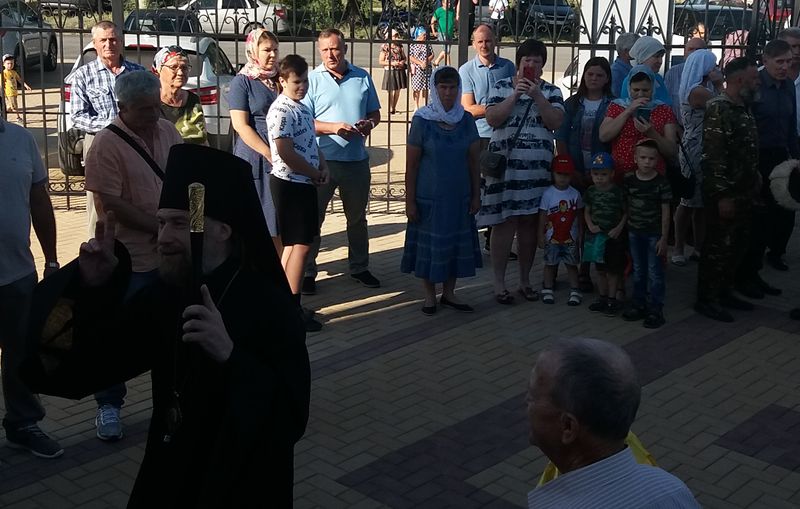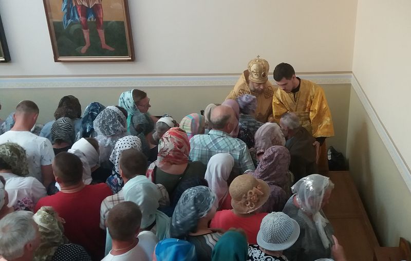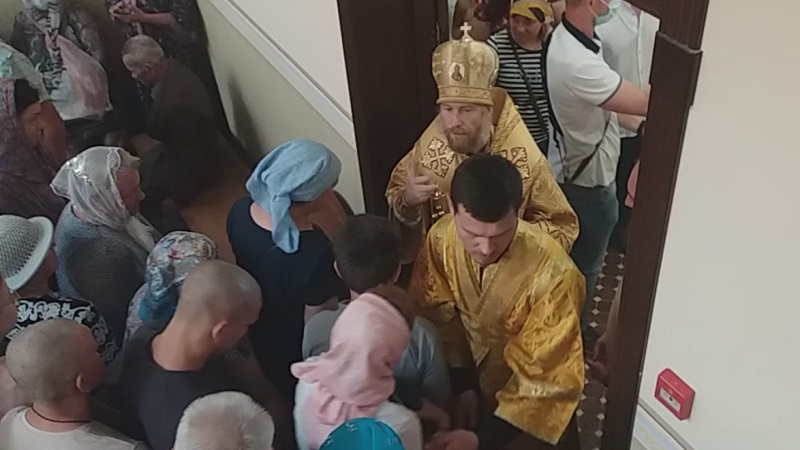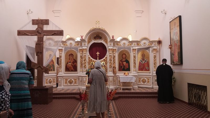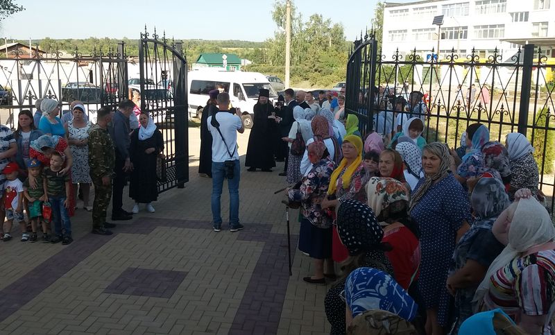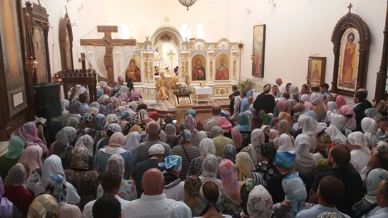 Новый храм не смог вместить всех желающих посетить службу - несколько десятков человек остались за дверью. По некоторым подсчетам на Литургии присутствовало порядка 350 человек.