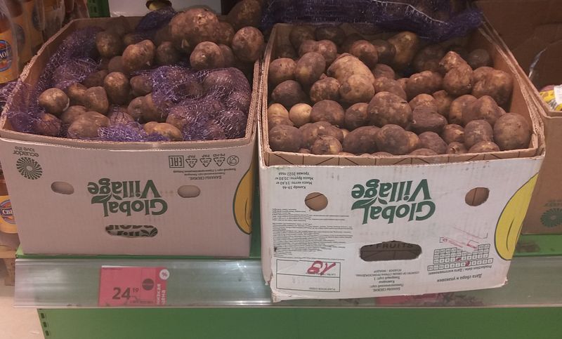 Для тех покупателей, кто не особо привередлив к вкусовым качествам и внешнему виду картофеля, есть альтернативное и более бюджетное предложение в «Пятерочке», где купить молодые клубни можно по 24 рубля. Тут-же, рядом, установлены ящики с красным картофелем по 50 рублей за кило. Разница ощутимая. Так что, выбор - на любой цвет, вкус и кошелек.