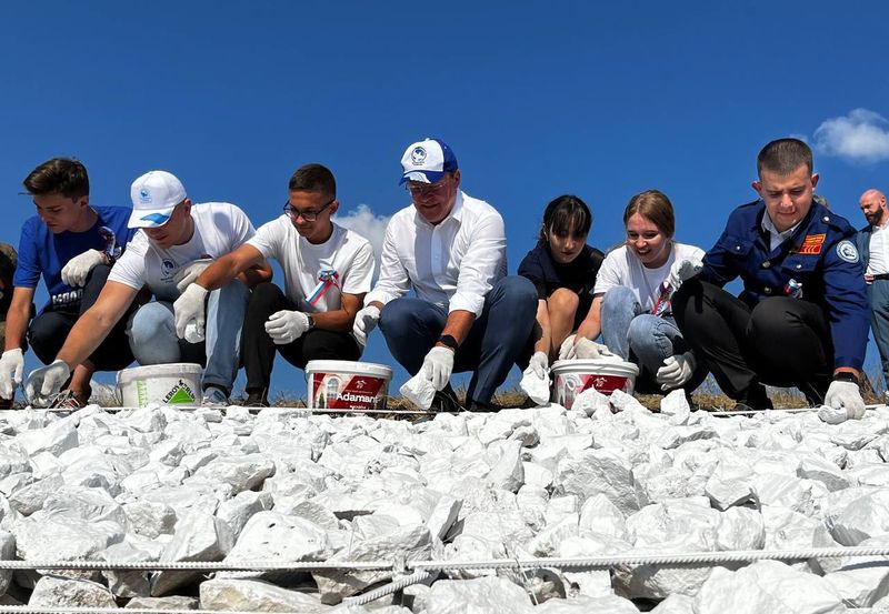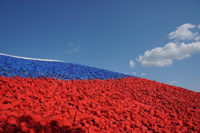 В Самарской области в День государственного флага РФ 22 августа прошла патриотическая акция «Цвета России». Представители студотрядов области и молодежных объединений выложили на горе в районе поселка Новосемейкино 63-метровое изображение флага России, а также символов Z и V из камней, окрашенных в цвета триколора. Появилась на въезде в Самару и строка из гимна РФ «Россия – священная наша держава». Арт-объект станет символом поддержки воинов, защищающих Отечество в ходе СВО на Украине, уверены организаторы. На то, чтобы создать композицию, потребовалось 600 тонн камней, 2,5 тонны краски и более двух недель работы.