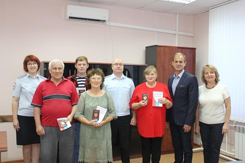 Пять человек, прибывших с Украины в Сызрань, стали гражданами Российской Федерации: переселенцам на днях были вручены паспорта. Все пятеро - разного возраста; гражданство России они получили в упрощенном порядке. Сотрудники полиции территориального органа в кратчайшие сроки помогли вынужденным переселенцам с оформлением всех необходимых документов. В мероприятии по вручению паспортов участвовали представители городской администрации, начальник МУ МВД России «Сызранское» полковник полиции Денис Кириллов и представитель Общественного совета при Управлении сызранской полиции Павел Ашурков. Новые граждане приняли Присягу гражданина Российской Федерации и получили из рук полковника полиции Дениса Кириллова заветный документ и экземпляр Конституции Российской Федерации.