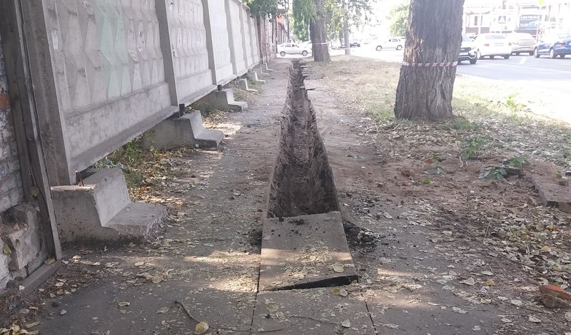 На улице Интернациональной от перекрестка с улицей Чапаева в сторону Ильинского моста экскаватор роет траншею прямо посредине тротуара. Более недели назад местные жители заметили, что на тротуаре с одной из сторон дороги появились прорези. «Мы сперва даже обрадовалось - а вдруг там новый тротуар будет, а изрезали его, демонтировать старый. Но, увы... Роют траншею, чтобы подвести коммуникации к зданию бывшей аптеки, которую ремонтируют более десяти лет, если не больше. Мы уже прозвали этот ремонт стройкой века. Теперь нас интересует, а насколько качественно потом эта траншея будет заделана?», - рассказал корреспонденту портала «маленькая Сызрань» местный житель.