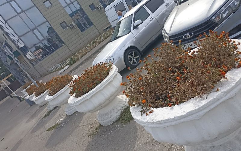 Трудно не согласиться с местной жительницей. Несмотря на жару нынешним летом во второй его половине, уж полить высаженные в вазонах бархатцы можно было, чтобы они радовали глаза цветением, а не засохшими растениями.