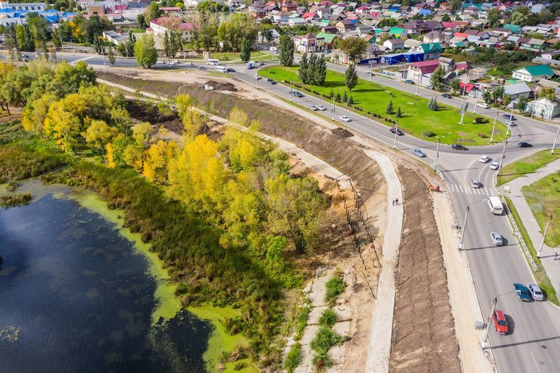 Несомненно, строительство Монастырской набережной - самый масштабный проект по благоустройству территорий в Сызрани в текущем году. Даже давно ожидаемый капитальный ремонт улицы Ульяновской, который начался в прошлом году и продолжился в текущем, не вызывает такого интереса, как набережная. У многих еще живы в памяти картинки участков территории, которая облагораживается, такими, какими они были в начале весны, а также в течение очень многих лет до этого: заросли на склоне, залежи мусора, поросшие берега, за которыми и речки не видать. Но с начала мая все переменилось и территория стала преображаться.