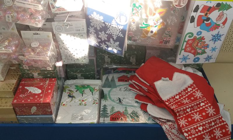 Женщина призналась, что сперва они с приятельницей даже решили, что им мерещится. И что они обе некоторое время удивленно смотрели на полки и только спустя некоторое время поняли, что им не кажется, а на стеллажах и правда елочные игрушки и прочая новогодняя атрибутика.