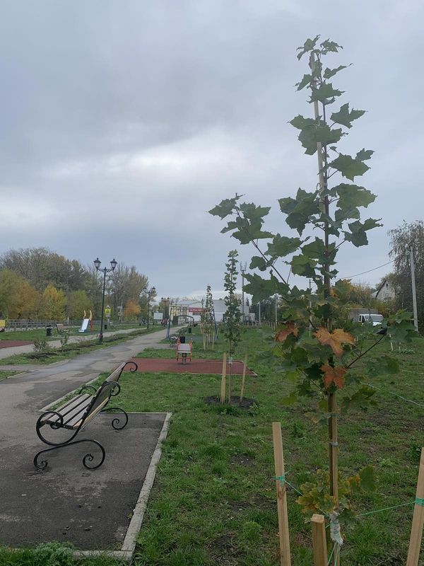 Несмотря на опасения, что клены не приживутся, так как были высажены в самую жару в конце августа, они стоят ровные, покрытые листвой, что не может не радовать - значит по весне они проснутся. А теперь к ним присадили 20 белых акаций. Что клены остролистые, что белые акации - невероятно красивые для озеленения территорий породы деревьев с пышной кроной. Когда подрастут, аллея начнет оправдывать свое название. Пока не могут порадовать поросшие бурьяном клумбы - засаженные цветами они смотрелись бы куда приятнее.
