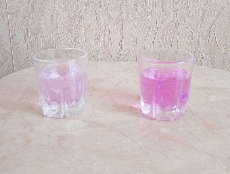 разницу: один гель ярко-розовый, а второй - вода. И налита бутылка была