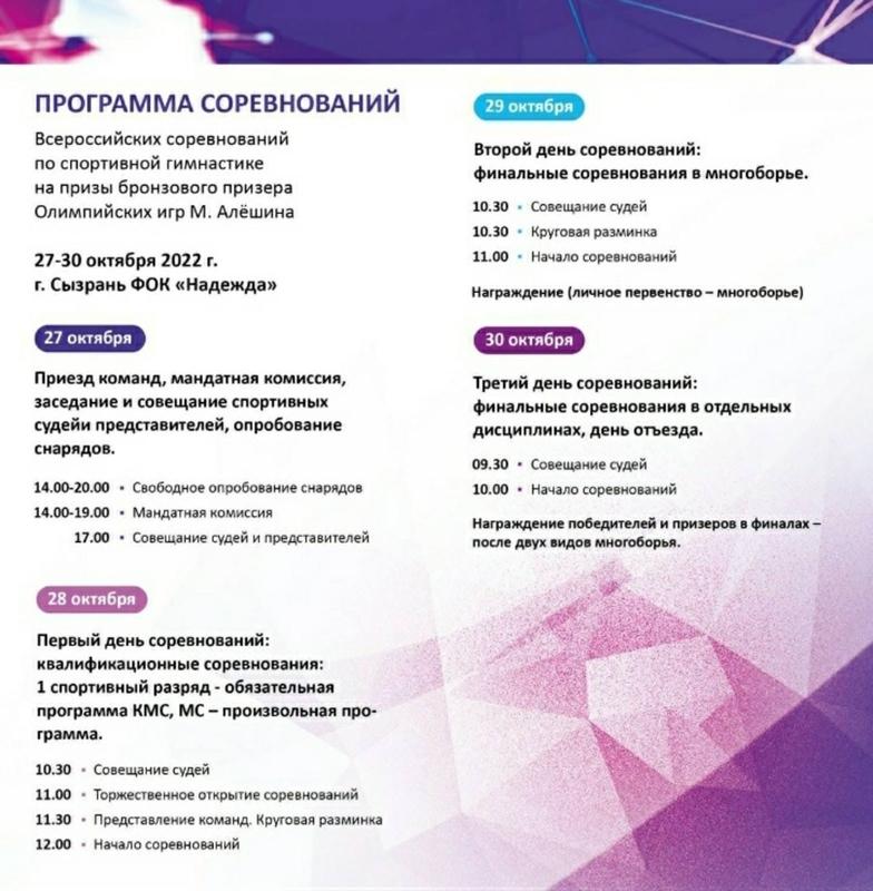 Впервые в Сызрани пройдут Всероссийские соревнования по спортивной гимнастике на призы бронзового призера Олимпийских игр Максима Алешина. Состязания на призы нашего земляка, известного гимнаста, пройдут с 28 по 30 октября в ФОК «Надежда». Спортсмены будут состязаться в одном из самых сложных, но в тоже время ярких и уникальных видов спорта: спортивной гимнастике. Своё мастерство продемонстрируют гимнасты из многих регионов страны. Торжественное открытие пройдет в 11 часов в ФОК «Надежда». После торжественного открытия пройдет круговая разминка, в 12 часов начнутся соревнования. А 29 и 30 октября соревновательные этапы будут завершать награждения победителей. Спортсмены будут состязаться и в многоборье, и в личном первенстве. Вход на зрелищные состязания - свободный.