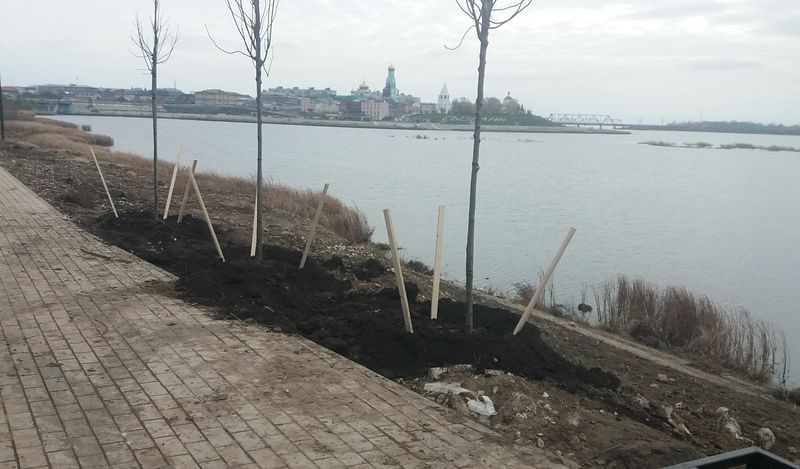 На Монастырской набережной в Сызрани высадили деревья и кустарники. Сроки для этого вида работ озеленители выбрали самые оптимальные. Подрядчик - ООО «Берсо» - не упустил и другие детали, чтобы саженцы прижились и по весне пошли в рост. Незадолго до высадки растений на эти участки был завезен грунт, в почву из каждой лунки было добавлено удобрение. Саженцы закуплены не маленькие - большинству из них более 10 лет. Для транспортировки их из питомника и высадки в грунт была использована тяжелая техника, что немудрено - отдельные саженцы человеку не поднять, так что был задействован кран.