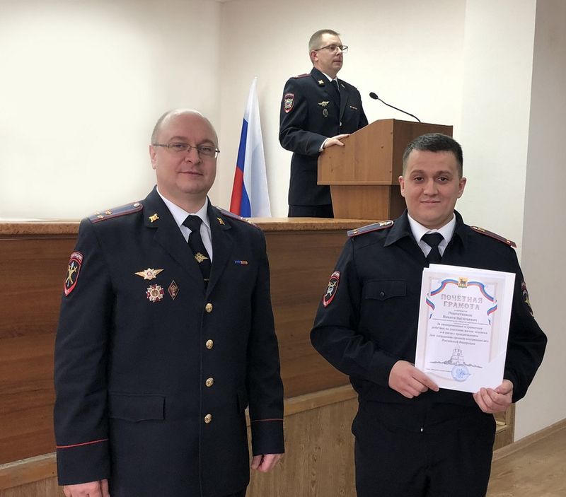Сегодня на оперативном совещании начальник МУ МВД России «Сызранское» полковник полиции Денис Кириллов за своевременные и грамотные действия при спасении жизни человека вручил лейтенанту полиции Никите Решетникову Почетную грамоту главы Сызрани Анатолия Лукиенко.