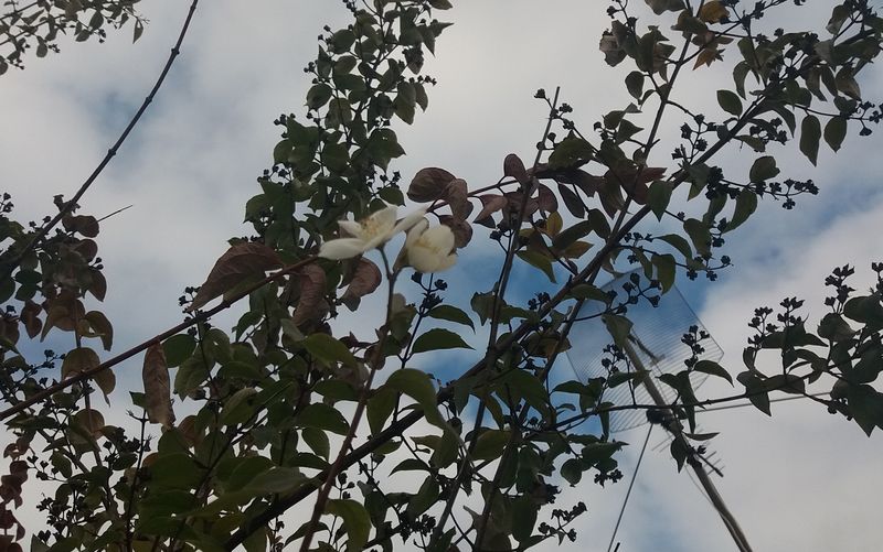 Женщина, шутя, говорит, что глобальное потепление можно легко наблюдать в ее отдельно взятом огороде. На сегодня, 11 ноября, как уверяет женщина и подтверждает это фотографиями, ее куст все еще цветет - белые цветы она видела днем на нескольких ветках.