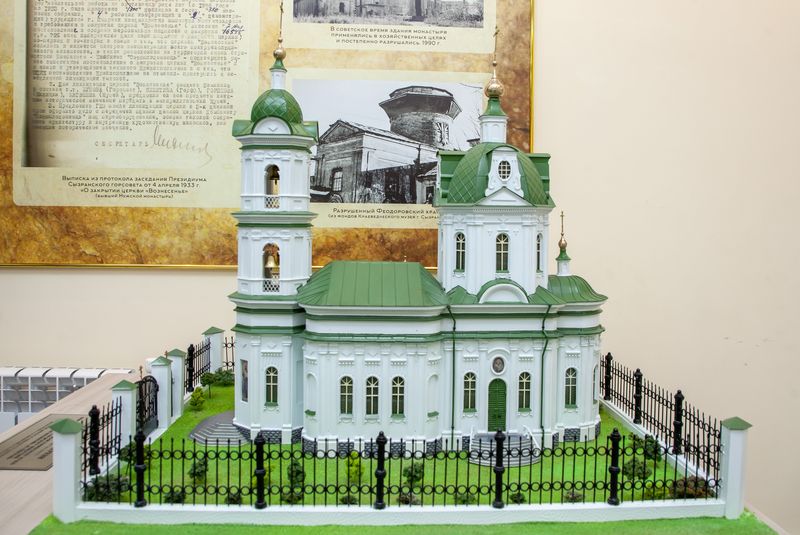 Теперь полюбоваться Троицким храмом в масштабе 1:35 сызранцы смогут в Церковно-историческом музее, который находится на территории Свято-Вознесенского мужского монастыря.