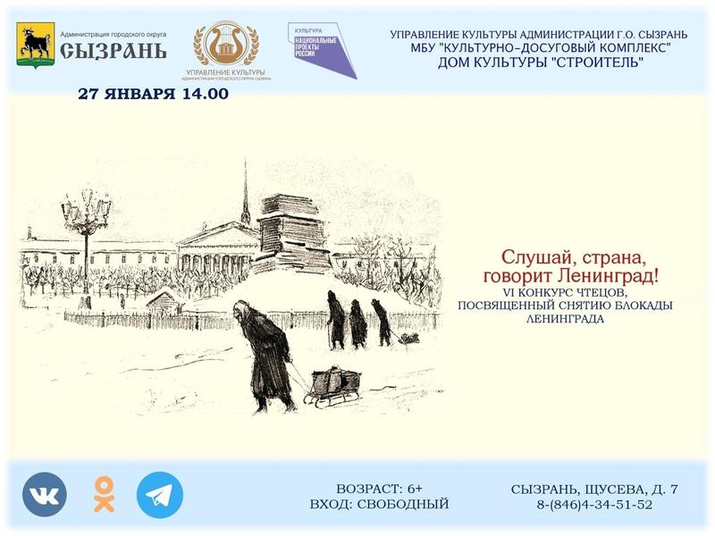 чтецов, посвященный дню снятия блокады Ленинграда «Слушай, страна, говорит Ленинград!» В тот же день, 27 января в Краеведческом музее
