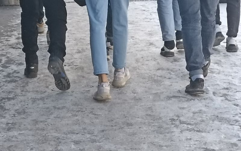 Порой доходит до абсурда - на голове шапка по самые глаза надвинута, шея укутана в широкий и толстый шарф, длинная дубленка на меху, при этом щиколотки голые, а на ногах - демисезонные кроссовки.