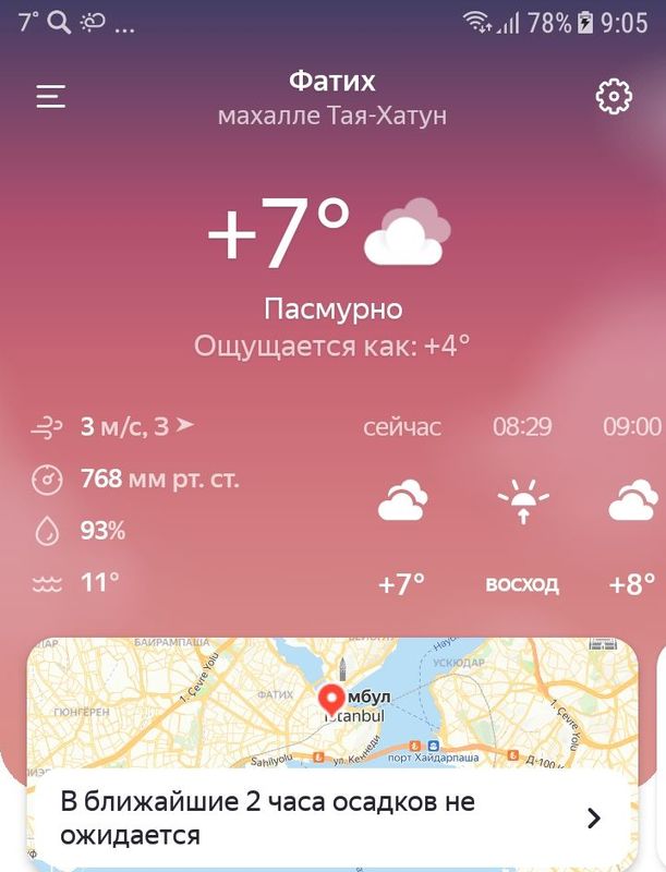 Лишь позже женщина поняла, что телефон ей показывает температуру воздуха в Турции, в Стамбуле. Стала смотреть дальше в приложении, настраивать на Сызрань, но не все так сразу и получилось - телефон ей упорно твердил, что демонстрирует ей температуру воздуха ее места прибывания.