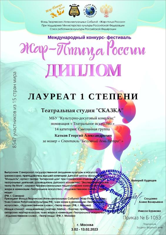 Спектакль про парня-ловеласа, который запутался в отношениях с девушками, принес сызранской театральной студии «Сказка» победу на Международном конкурсе-фестивале. Напомним, комедия «Безумный день Петра» стала премьерой взрослого состава театральной студии, которая объединила самодеятельных «артистов из народа». В спектаклях «Сказки» играют и дети, и взрослые. Летом в городе прошла премьера «Безумного дня...», а теперь юморной спектакль про Петра и его девушек, которых он умудрился пригласить на свидание в одно и то же время, принес «Сказке» звание Лауреата 1 степени в номинации «Театральное искусство» Международного конкурса-фестиваля «Жар-Птица России».
