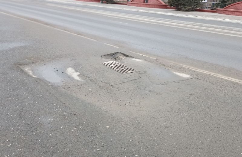 Провал на площади наметился еще несколько лет назад прогибом асфальта в нескольких углах около люка. В прошлом году участок худо-бедно подправили, но как только сошел снег, стало видно, что ситуация усугубилась. Здесь яма может образоваться в любой момент.