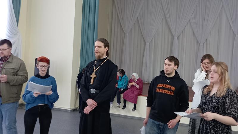 Студентка колледжа искусств Анастасия Шлыкова спела «Колыбельную для России». Священник Давид Кургузов рассказал собравшимся о святых мучениках. Прощаясь,